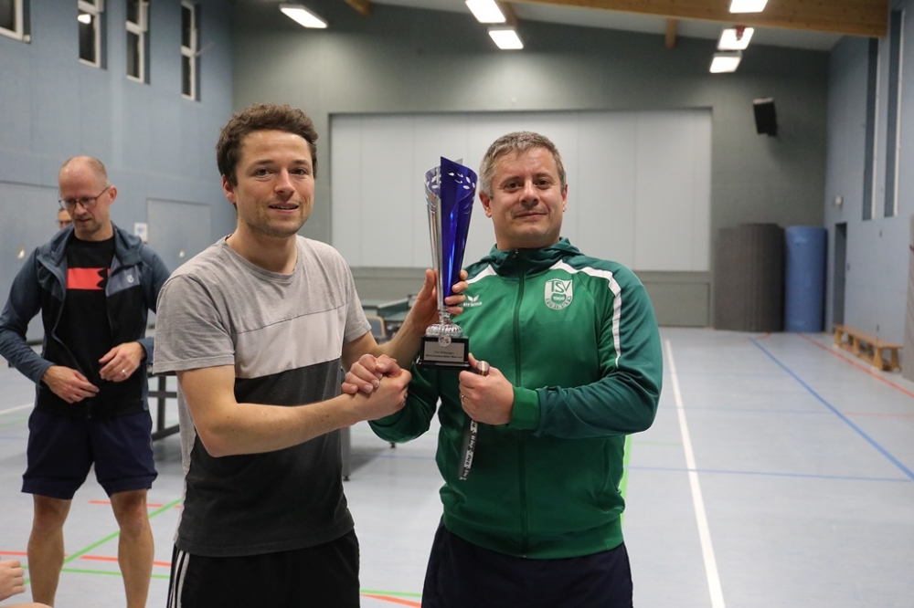 Im Spiel um den dritten Platz stellte Ralf Maier, nach 6-jähriger Tischtennisabstinenz, seine spielerische Klasse eindrucksvoll unter Beweis. Er besiegte Tobias Henninger und am Ende hatte nicht nur er die Gewissheit, dass er nichts verlernt hat und für die erste Mannschaft – die in der Rückrunde um den Klassenerhalt kämpft - eine willkommene Verstärkung wäre.