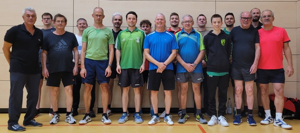 Bei der diesjährigen Doppel-Vereinsmeisterschaft, die am 11. Oktober 2023 in der Römerhalle stattfand, zeigte sich Abteilungsleiter Thomas Klotzbücher erfreut, insgesamt 17 aktive und nichtaktive Spieler, davon immerhin 5 Spieler der I. Herren-Mannschaft, begrüßen zu dürfen. Zudem gesellte sich Ralf Maier, der langjährige Rekordhalter bei den Einzel-Vereinsmeisterschaften, zum illustren Teilnehmerfeld hinzu.