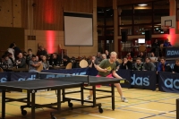 In der Doppelkonkurrenz wurden die lt. TTR-Rangliste spielstärksten Spieler/-innen gesetzt, um an der Seite eines spielerisch schwächeren Doppelpartners, der jeweils zugelost wurde, ein ausgeglichenes Spielniveau zu gewährleisten. Natürlich gelang das nicht in allen Begegnungen. Die Auslosung ergab auch in diesem Jahr interessante Paarungen, ohne von Anfang an einen klaren Favoriten ausmachen zu können. Nach drei spannenden KO-Runden, mit so manchem Überraschungssieg und nichteinkalkulierten Niederlagen, qualifizierten sich die Doppelpaarungen Niklas Schwarz (TuS Offstein) und Anja Spieweck (TSG Hofherrnweiler), Tim Schniepp (SV Plüderhausen) und Roland Bretzler (SchüV Durlangen), Luca Stempfle (TTC Leinzell) und Stefan Maier (TSV Alfdorf), Michael Österreicher (FC Schechingen) und Oliver Schilling (TV Herlikofen) für das Halbfinale. Hier setzten sich mit Österreicher/Schilling (gegen Schniepp/Bretzler) und Stempfle/Maier (gegen Schwarz/Spieweck) zwei Paarungen aus dem Altkreis Schwäbisch Gmünd durch und schafften damit den Einzug ins Finale. So standen sich mit Österreicher und Stempfle zwei Kontrahenten gegenüber, die bereits über Finalerfahrung aus früheren Player’s Night Jahren verfügten. Letztendlich setzte sich die favorisierte Paarung Österreicher/Schilling gegen Stempfle/Maier mit 2:0 durch und lies sich von seinen Anhängern zurecht feiern.