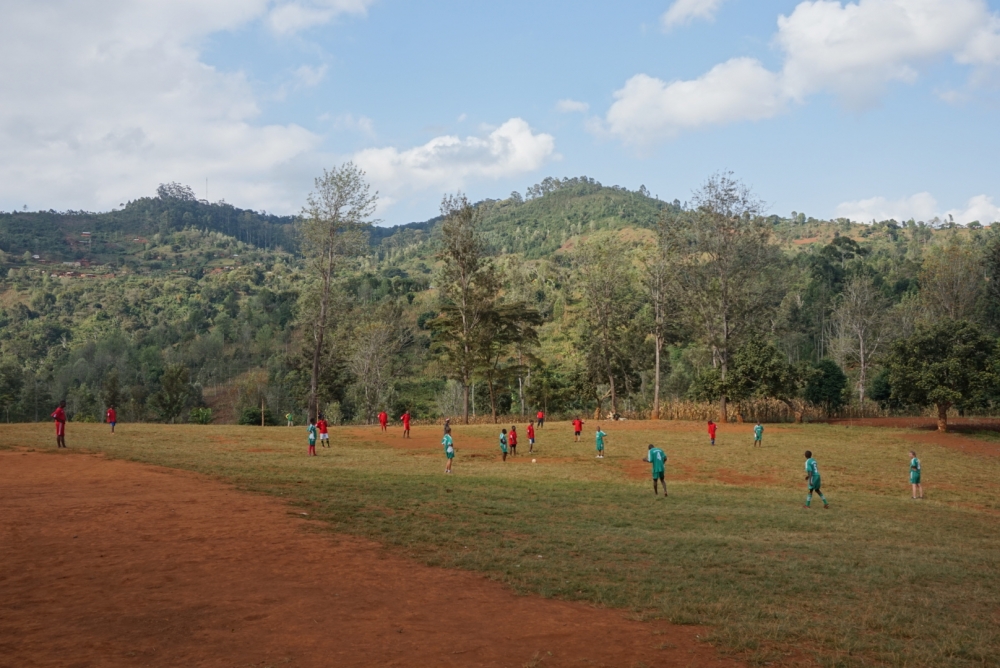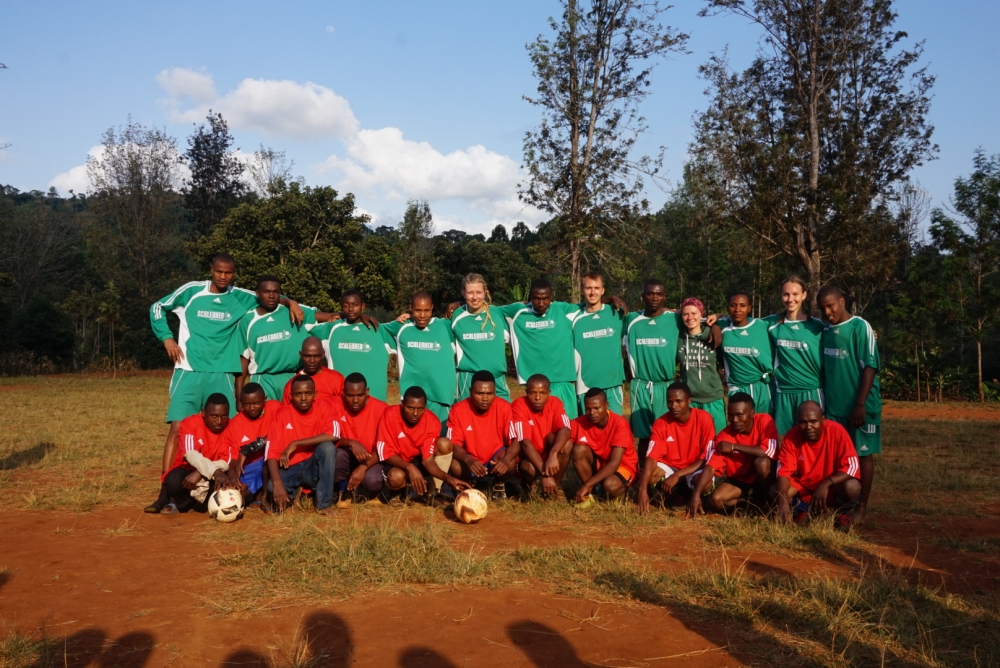 Fast könnte man es für ein Fußballspiel zwischen dem TSGV Waldstetten und dem TSV Böbingen halten: In den roten und grünen Trikots der beiden Vereine fand ein spannendes Spiel inmitten der wunderschönen Usambaraberge in Tansania zwischen der lokalen Mannschaft des Dorfes Mbelei und der tansanisch-deutschen Workcampgruppe statt. In dem von Kolping Deutschland und der New Age Foundation in Tansania organisierten Workcamp lebten und arbeiteten junge Erwachsene aus Tansania und Deutschland drei Wochen lang zusammen. Darunter war Theresa von Abel aus Waldstetten, die die vom TSGV Waldstetten und dem TSV Böbingen gespendeten Fußballtrikots und Bälle mit Freude überreichte. Die Gastgeschenke schienen sehr gut anzukommen und so konnte ein packendes Spiel beginnen. Fairplay wurde groß geschrieben und das lokale Team gewann gekonnt mit 3:1. Generell war zu beobachten, dass in Tansania Fußball sehr beliebt zu sein scheint, da sich auf jeder freien Rasenfläche Jung und Alt zum Kicken trifft.