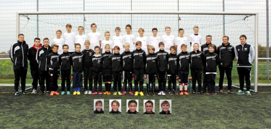 Stehend in Weiß v. l.: Danijel Barunovic, Marco Kuhn, Noah Auer, Justin Dworczyk, Julius Henzler, Max Eckardt, Janino Cudazzo, Leon Wanner, Adrian Ocker, Marian Elser, Fabian Huttelmaier, Fynn Wiedmann.