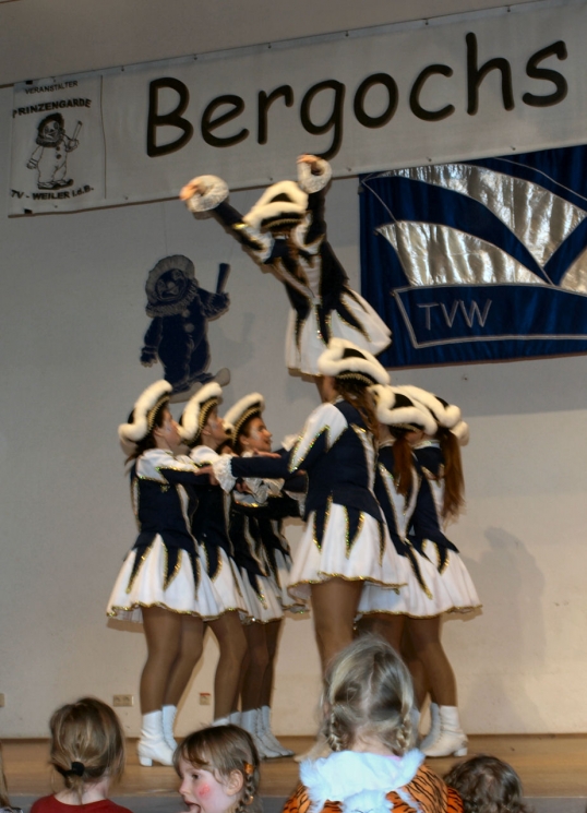 Zu den Highlights des Tages gehörten unter anderem die sehr gelungenen Auftritte der Dergelesgarde sowie der Prinzengarde des TSV mit rhythmisch und technisch anspruchsvollen Formationen zu mitreißender Musik. Das närrische Volk forderte natürlich Zugaben von den kleinen und großen Gardemädchen.