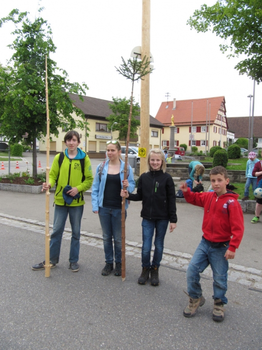 Traditionell trafen sich die Wanderer des TSV Böbingen zur Maiwanderung. Bei idealem Wanderwetter ging kurz nach halb zehn Uhr die Horde mit knapp 45 Teilnehmern, Bollerwagen und einem Hund auf die Strecke.
