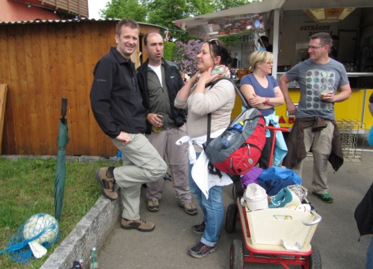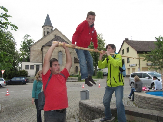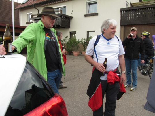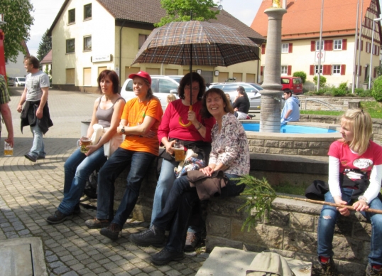 An Fronleichnam machte sich die Männergarde mit Freunden und Fahrrädern auf große Tour. Vor der Abfahrt am Bahnhof hatte Ewald bereits einen Plattfuß. Pünktlich um 9 Uhr waren alle startklar und es ging mit dem Zug Richtung Ellwangen. Über Schrezheim und Limestor Dalkingen wurde der Rainau-Buch-Stausee zu einer ausgiebigen Pause angesteuert. Danach Weiterfahrt Richtung Hüttlingen, Kochertal und Niederalfingen. Kurz vor Waiblingen hatte Karle einen doppelten Plattfuß. Auch das wurde fachmännisch behoben. Über Abstgmünd, Leintal nach Laubach zur wohlverdienten Mittagspause. Anschließend kurzer Besuch in Heuchlingen bei der Gazelle Dany. Richtung Holzleuten und Limes dann über den Gratwohl nach Böbingen zur TSV Halle. Dort wurde der Tag mit einer Grillparty und Freibier ausgiebig ausklingen lassen.