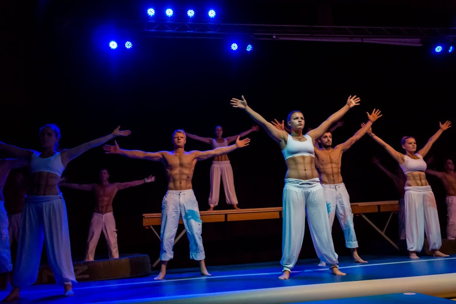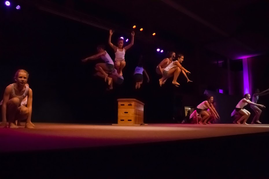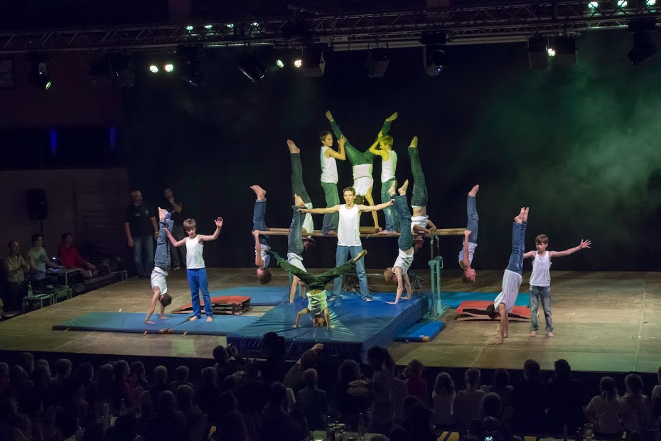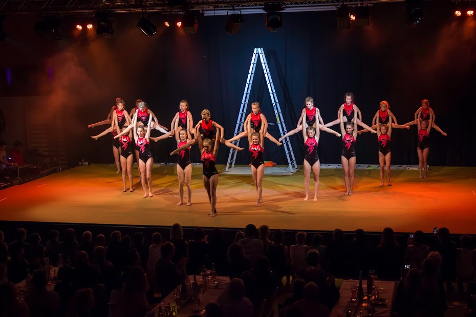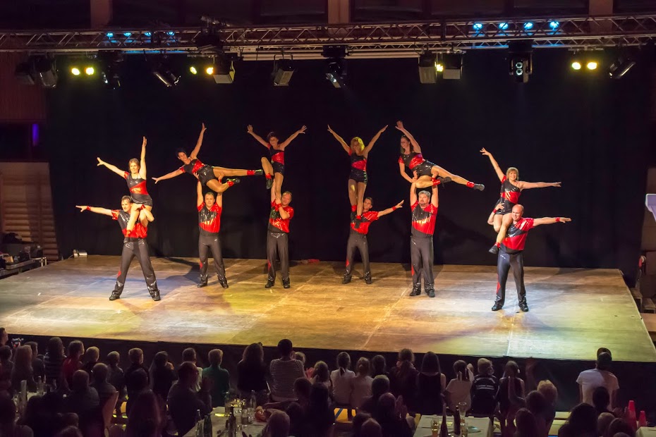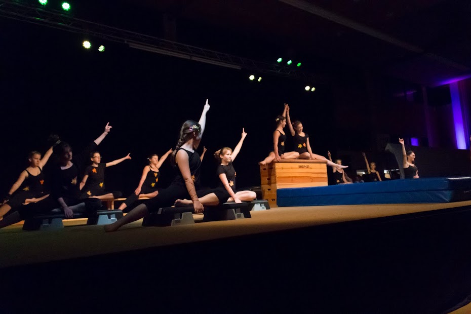 Die Sport & Dancenight wurde von den Turnmädchen unter dem Motto „Spirit of Elements“ eröffnet. Die jüngsten Turnerinnen präsentierten durch eine Tanzeinlage mit wehenden Tüchern das Element Luft. Anschließend wurde das Element Erde von den Freitagsturnerinnen sehenswert mit Stepgymnastik und Trampolin dargestellt. Durch das Lied „Perfekte Welle“ von Juli verkörperten die zehn- bis zwölfjährigen Turnerinnen, mit einer gelungenen Bodenturndarbietung, das Wasser. Einen vorzeitigen Höhepunkt sicherten sich die Turnerinnen mit einer Akrobatikshow zum Element Feuer. Dabei inszenierten die Mädchen das Feuer mit mehreren Leitern und turnten in schwindelerregender Höhe eine perfekte Choreographie. Abschießend verabschiedeten sich die vier Elemente mit einem gemeinsamen Tanz von der Bühne und machten Platz für die Rock´n´Roller „Jumping Jailbirds“. In Kostümen aus den 60ern ließen die Tänzerinnen und Tänzer spektakulär das Tanzbein schwingen. Danach zeigten die Nachwuchsturner dem Publikum am Barren und Boden worauf man sich in Böbingen in der Zukunft gefasst machen kann. Nach einer kleinen Verschnaufpause kamen erneut die „Jumping Jailbirds“ auf die Bühne zurück und lieferten nunmehr in ihren glitzernden Showoutfits eine Performance ab, bei der selbst den Zuschauern vom Zusehen schwindelig wurde.