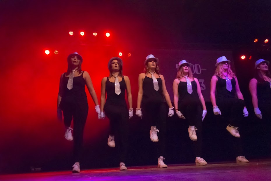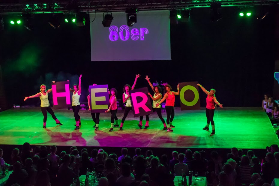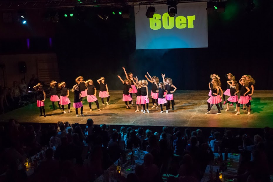 Nach der kurzweiligen Pause übernahmen die Tänzerinnen des TSV unter dem Motto „Dance the time warp“ den noch anhaltenden Spannungsbogen und nahmen uns mit auf eine Zeitreise durch die vergangenen Jahrzehnte. Auf die bekannten Lieder von Elvis Presley zeigten die Tanzmädels was sie drauf haben. Danach nahm „Dark Destination“ das Publikum mit in die 70er Jahre. Die Tanzgruppe „Time2Dance“ löste mit ihrer Flashdance- und Aerobicnummer beim Publikum ein prickelndes Erlebnis aus. Die 90er wurden von der Tanzgruppe „Crazy Dancers“ vertreten. Zu Ehren des Todes von Michael Jackson widmeten „Delicious“ ihm ihren Tanz. Abschließend wurden die Zuschauer von allen Tanzgruppen, mit dem aktuellen Hit „Timber“, zurück in die Gegenwart geholt.