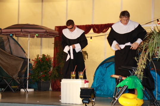 Zwei Ehepaare, verschiedene Urlaubspläne, ein Opa, zwei Kosmetikerinnen, ein Polizist und Nonnengewänder - wenn Sie sich fragen wie das zusammenpasst, sollten Sie auch in diesem Jahr nicht fehlen, wenn sich der Vorhang in der TSV-Halle öffnet!