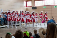 In der Pause kam dann das kleine närrische Volk vollends auf ihre Kosten. Die Musikkapelle bot den kleinen Narren eine tolle Faschingsmusik, es wurde auf der Bühne heftig getanzt, gehopst und getobt. Nach der Pause betraten die Tanzmädels und die Dancing Kids mit viel Schwung die Bühne und zeigten ein buntes Feuerwerk ihrer Tanzkunst auf das Lied „Traum“ von Cro. Einstudiert wurde dieser Auftritt von Schneewittchen Madeleine Lutz. Als Belohnung für diesen Auftritt wurde eine Rakete im Saal steigen gelassen. Die großen Turnmädels um Anja und Ines zeigten eine super Choreographie mit Tanz, Turnen Akrobatik und Trampolin.