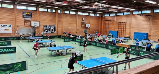 Bei der diesjährigen Doppel-Vereinsmeisterschaft, die am 11. Oktober 2023 in der Römerhalle stattfand, zeigte sich Abteilungsleiter Thomas Klotzbücher erfreut, insgesamt 17 aktive und nichtaktive Spieler, davon immerhin 5 Spieler der I. Herren-Mannschaft, begrüßen zu dürfen. Zudem gesellte sich Ralf Maier, der langjährige Rekordhalter bei den Einzel-Vereinsmeisterschaften, zum illustren Teilnehmerfeld hinzu.