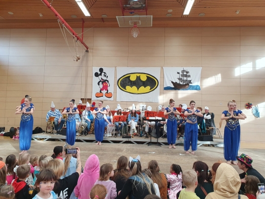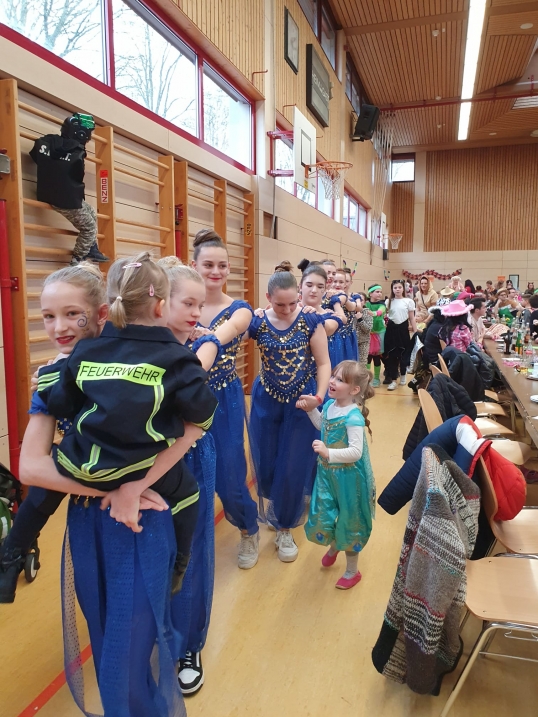 Den Startpunkt des Programmes setzte die Dergelesgarde des TSV, die mit ihrem Auftritt für Stimmung im Publikum sorgten. Weiter ging es mit den Tanzmäusen, die zur Musik von „Vaiana“ tanzten. Nach einer kurzen Pause starteten die Tanzmädels durch. Sie begeisterten mit einem Tanzmix zu fetziger Popmusik. Darauf folgte dann die Gruppe X-Pression, die eine Geheimagenten-Show zeigten. Nach einigen Faschingsliedern und einer Polonaise quer durch die bunt geschmückte Römerhalle folgte eine Modenschau bei der alle ihre tollen Kostüme präsentieren konnten. Im Anschluss zeigte die Tanzgruppe Dark Destination ihr Können. Sie zeigten eine Mischung aus verschiedenen orientalischen Tänzen passend zum Film Aladdin. Den Abschluss machte dann die Prinzengarde des TSV.